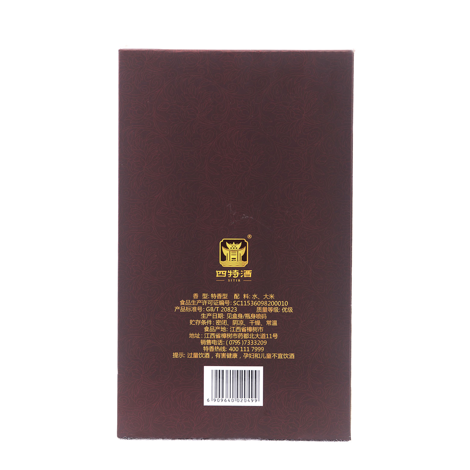 香型:特香型 原料:水、大米 |