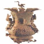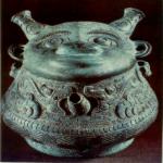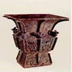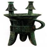 青銅器起于夏,現已發現的最早的銅制酒器為夏二里頭文化時期的爵。青銅器在商周達到鼎盛,春秋沒落,商周的酒器的用途基本上是專一的。據< <殷周青銅器通論>>,商周的青銅器共分為食器、酒器、水器和樂器四大部,共五十類,其中酒器占二十四類。按用途分為煮酒器、盛酒器、飲酒器、貯酒器。此外還有禮器。形制豐富,變化多樣。但也有基本組合,其基本組合主要是爵與觚,或者再加上斝,同一形制,其外形、風格也帶有不同歷史時期的烙印。