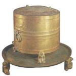 溫酒器,飲酒前用于將酒加熱,配以杓,便于取酒。溫酒器有的稱為樽,漢代流行。