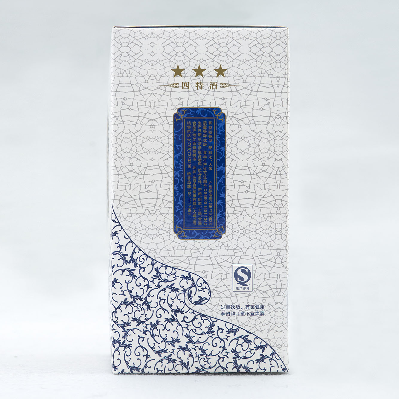 三星品質,錦繡和諧。四特錦瓷系列酒——傾酒入杯,香氣襲來,久久不散,其酒體入口圓潤,余味爽凈。瓶型圓潤和諧,氣質斐然,釋義為團圓和美的CHINASTYLE。四特錦瓷三星身著青花外衣,優雅從容;外盒也以中國青花為紋飾,呈現大方、時尚的硬朗氣質,整體風格盡顯“中國味兒”。