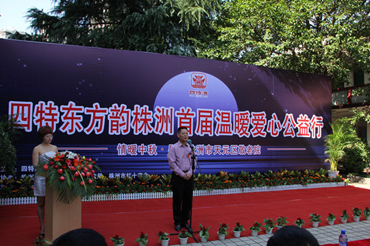 當天上午10點,在一段溫馨音樂中,“四特東方韻(株洲)首屆溫暖愛心公益行”首先在天元區敬老院拉開了帷幕。株洲市副市長李異建,市民政局局長馬民杰,紅十字會會長張麗巖等人一同來到現場,并與敬老院的老人們一起觀看精彩的文藝演出。下午,“四特東方韻(株洲)首屆溫暖愛心公益行”,又在株洲市福利院展開。主辦方給孩子們帶去了洗漱用品、學習用品、月餅及心理咨詢室設備。那一張張洋溢著燦爛的笑容表達了他們的心情,現場不僅有藝術團表演,還有福利院小朋友自己的表演……