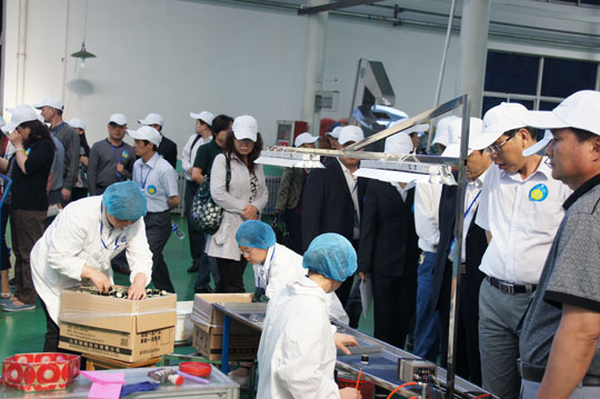 在孫世堯董事長的陪同下,參觀團隊在觀看麗鵬股份企業(yè)宣傳片后,分別至麗鵬股份各車間生產(chǎn)一線參觀學習。在麗鵬股份車間中,高效運轉的自動化流水生產(chǎn)線、忙碌有序的工作人員、完善的管理流程讓所有參觀者印象深刻;琳瑯滿目、做工精美、質量卓越的各類瓶蓋讓人們發(fā)現(xiàn)小產(chǎn)品也有大世界、大學問。當參觀團隊得知麗鵬股份在瓶蓋領域擁有近百項專利,是中國防偽瓶蓋行業(yè)標準的主要起草單位時,都對麗鵬股份以科技求發(fā)展之路表示認同。