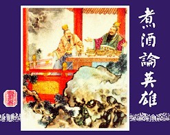 二人以青梅下酒,酒正酣時,天邊黑云壓城,忽卷忽舒,有若龍隱龍現。曹操說:“龍能大能小,能升能隱;大則興云吐霧,小則隱介藏形;升則飛騰于宇宙之間,隱則潛伏于波濤之內。方今春深,龍乘時變化,猶人得志而縱橫四海。龍之為物,可比世之英雄。玄德久歷四方,必知當世英雄。”曹操實乃不世出的絕頂人物,這一番話,看似描述龍之變化,目的是說“人得志而縱橫四海”。顯然,這是他的一番自我剖白,借物詠志。當然他也下了一個套,試探在劉備眼里,什么人能縱橫四海,比得上我曹操。劉備接連指出袁術、袁紹、劉表、孫策和劉璋等地方豪強,都被曹操一一否決。劉備這個回答應該給滿分,因為當時是個人都會如此回答。這樣曹操也就認為劉備見識一般,和常人無異。接著曹操給出了當世英雄的標準,他說,“夫英雄者,胸懷大志,腹有良謀,有包藏宇宙之機,吞吐天地之志者也。”劉備繼續裝傻,問:“誰能當之”曹操指了指劉備,后指了下自己,說:“今天下英雄,惟使君與操耳!”當時天雨將至,雷聲大作。劉備裝作受了驚嚇的樣子,筷子掉到了地上:“一震之威,乃至于此。”曹操笑著說:“丈夫亦畏雷乎”劉備說:“圣人迅雷風烈必變,安得不畏”將內心的驚惶,巧妙的掩飾過去了。