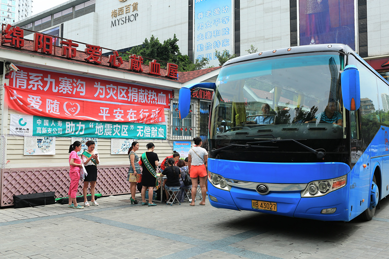 811日早上830分,獻血人員滿懷激情,乘坐公司大巴車,分別前往綿陽市中心獻血點和公園路愛心獻血屋,擼起袖子為九寨溝傷員獻熱血,助力災區共渡難關。