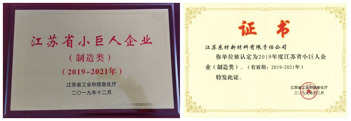 2020年1月,江蘇東材被江蘇省工信廳認定為江蘇省專精特新小巨人企業(制造類),在近日取得榮譽證書和榮譽牌匾。江蘇東材將以此為契機,繼續專注細分行業領域,走“專精特新”之路,切實提高創新能力、專業化水平和核心競爭力,為實現集團公司戰略發展目標作出新貢獻。